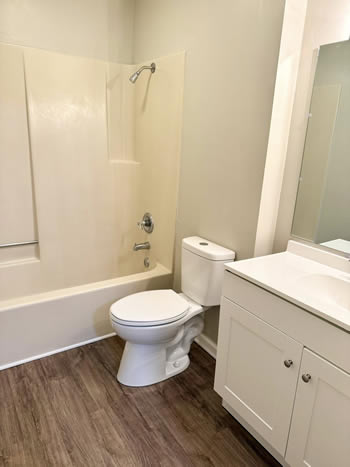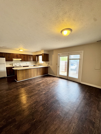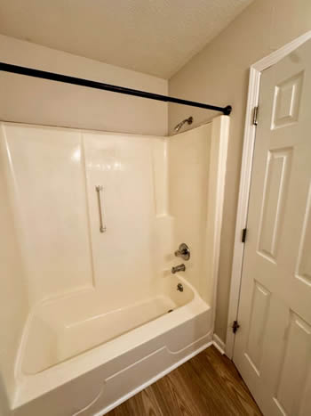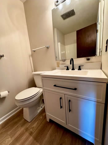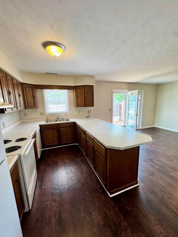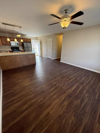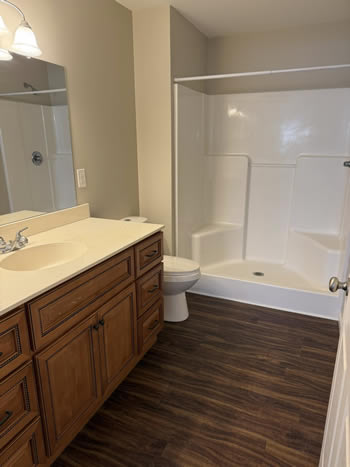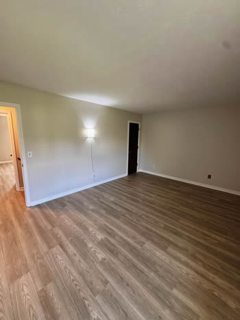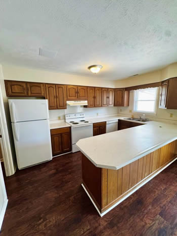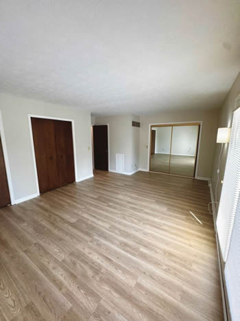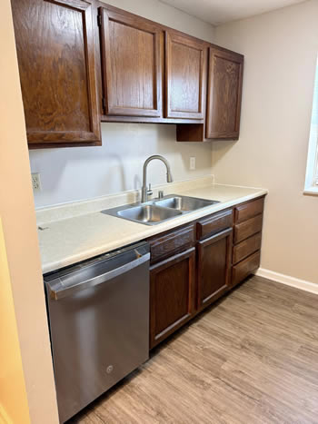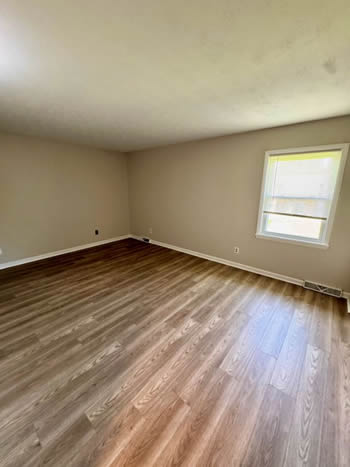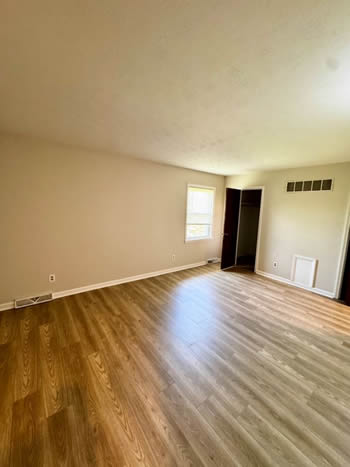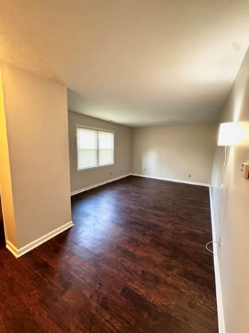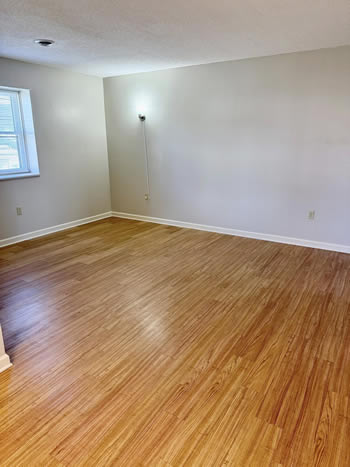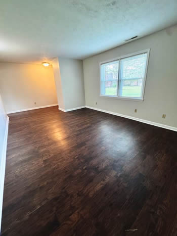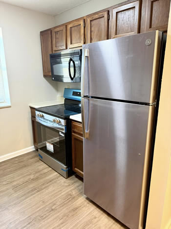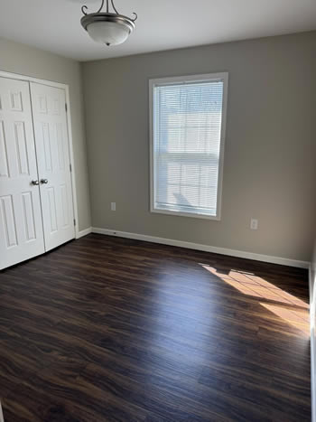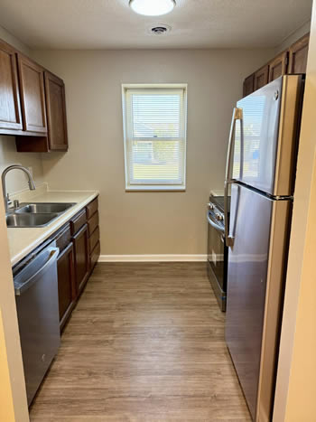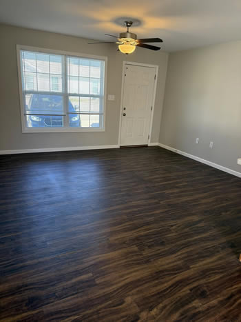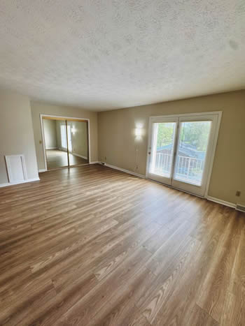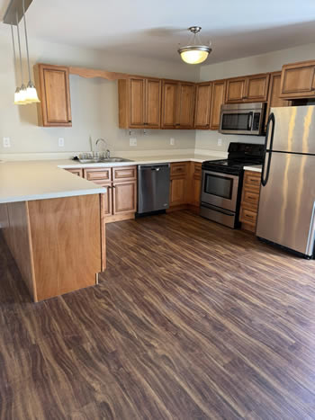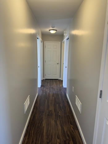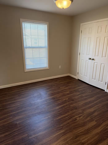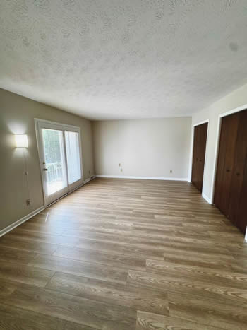 Our 2 BR apartments are approximately 1000-1100 square feet. They have hardwood look vinyl plank flooring throughout. They include all stainless appliances: refrigerator, electric range, dishwasher, microwave & garbage disposal. Each apartment has its own central heat and air conditioning unit, one full bath with walk-in shower, and an outdoor deck. The rent is $950/month which includes water, sewer, trash & yard maintenance & the Tenant pays the electric through Benton Electric. A security deposit of $950 and a one-year lease are required.
