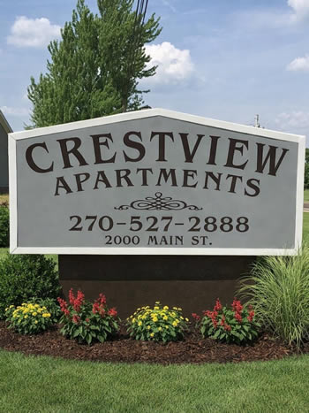 We have a nice 2 BR apartment available for rent at our newer Crestview complex. Crestview is located at 2000 Main Street in Benton, KY. Crestview apartments are in a 6 plex and all apartments are one level.